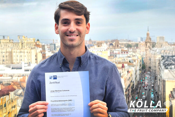 Jorge Martínez becomes certified fruit trade specialist KÖLLA warmly congratulates Jorge Martínez on successfully completing the IHK certification as a fruit trade specialist. Throughout the program, he engaged deeply with the diverse requirements of the …